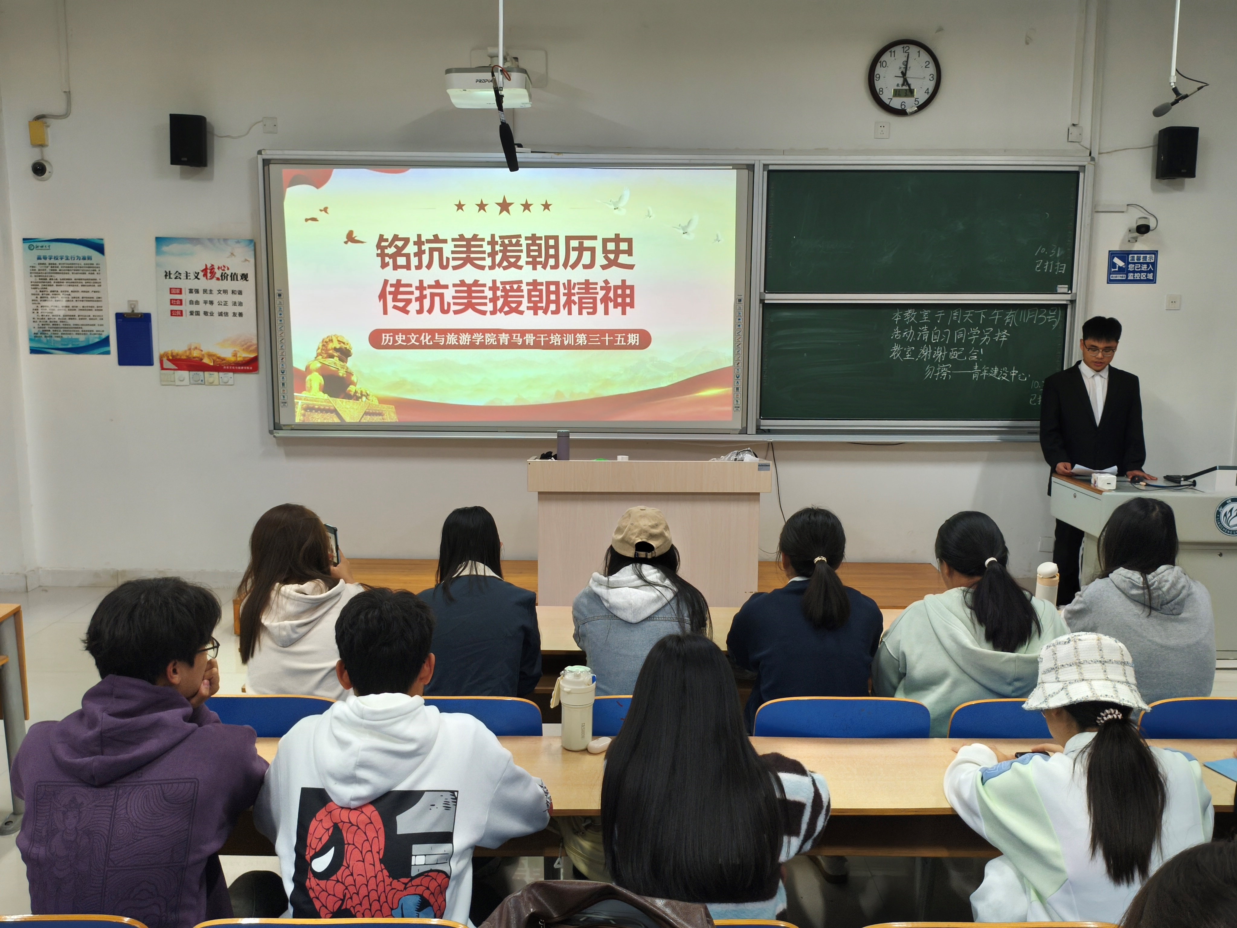 近日,新葡萄启动第三十五期“青马工程”培训,从理论学习、参观考察、社区实践三方面开展青年干部培养工作,有效发挥党史育人功能,鼓励青年干部进一步传承红色文化,弘扬先烈精神,为实现中华民族伟大复兴的中国梦贡献青春力量。 理论学习筑根基 党史教育担使命 为推进党史育人工作,传承与弘扬先烈精神,11月3日,新葡萄于6#A502教室举办“铭抗美援朝历史,传抗美援朝精神”第一期青马工程培训会。 主讲人从抗美援朝的背景、过程、重大意义三部分进行详细介绍,强调抗美援朝战争对巩固新中国政权、保障新中国持续发展的深刻影响,向同学们简要阐述抗美援朝战争的出兵原因、作战策略。主讲人播放抗美援朝纪录片,重现战争情景,向同学们呈现出志愿军战士顽强的战斗意志和崇高的爱国主义精神。 本次会议的顺利召开,有利于为青年学生树立榜样模范,使其增强使命感、责任感,发扬爱国卫国、敢于斗争的精神。 走进红色基地 追寻先辈足迹 为缅怀革命先烈,加深同学们对革命先烈英勇事迹的认识,11月9日,新葡萄于聊城革命烈士纪念堂和孔繁森同志纪念馆举办“追寻红色足迹,砥砺青春之志”活动。 志愿者组织同学们参观聊城市革命烈士纪念堂。同学们依次参观各个展厅,了解革命烈士的生平事迹、战斗经历和革命风采。在志愿者的组织下,同学们前往孔繁森同志纪念馆。通过观看孔繁森同志的影像资料,同学们深切感受到他的高尚品质和人格魅力。志愿者组织同学们进行分享交流会,同学们积极分享自己在参观过程中的感受,以及对革命先烈和孔繁森同志无私奉献精神的敬仰之情。 本次活动的顺利举办,有利于同学们近距离感受革命先烈英勇无畏、无私奉献的伟大精神,激发他们的爱国热情和民族自豪感,帮助同学们树立正确的人生观、价值观。 实践共绘民族梦 社区团结共建设 为加强民族团结宣传工作,促进社区形成民族团结一家亲的良好氛围,11月9号,新葡萄于聊城市王卷帽社区举办“民族大团结,共画同心圆”第一期青马工程社区实践活动。 主讲人以中华民族多元的历史文化为引,向社区儿童详细地阐述各民族在历史长河中相互交融、共同发展的历史进程。主讲人简要介绍各民族生活习惯和艺术层面的特色,并从少数民族的文化、习俗、历史等方面进行提问。主讲人积极引导社区儿童分享其对各民族文化的认识,并分发彩泥、画笔、彩蛋模型等材料,带领他们制作民族彩蛋。 此次活动的顺利举办,有利于提升社区儿童的民族自信心,帮助社区不同民族的儿童相互尊重,促进社区儿童铸牢中华民族共同体意识,传播各民族历史文化,为民族团结发展注入青春活力。 本期“青马工程”培训的顺利举办,有效明确了新时代青年工作的方向和使命,激励青年成为坚定可靠、堪当重任的青年马克思主义者。日后,新葡萄将持续聚焦新时代主题,传承红色基因,引领青年夯实理论功底、追求实干笃行。 (供稿:刘舒雅 王梦 郭俊霞 初审:刘舒雅 复审:张程程 终审:尤姗姗)