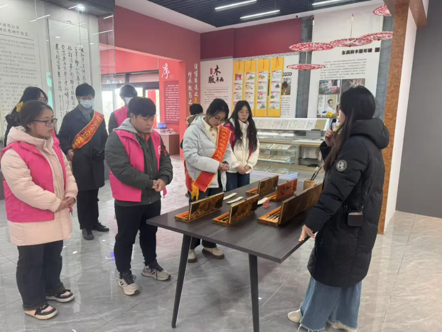 为增加群众对地方非物质文化遗产的了解,感受传统文化的独特魅力,推动传承特色传统文化,1 月 9 日,新葡萄“探非遗珍萃,扬古韵新声”社会实践调研队于聊城市道口铺街道非遗文化博物馆举办 “探寻东昌非遗,赓续文化血脉”活动。 志愿者用生动的语言向群众详细讲解东昌古锦、东昌木版年画及东昌毛笔三个非遗项目的历史起源,借博物馆内部展品介绍三个非遗的发展历程和文化内涵,鼓励群众仔细阅读展品介绍,了解东昌古锦、东昌木版年画、东昌毛笔的发展现状。 志愿者通过视频影像呈现木版年画的制作过程,让群众进一步感受非遗文化深厚的底蕴及其独特的制作工艺,并结合非遗文化与人民生活的联系,强调木版年画呈现出人民对美好生活的向往与追求。群众惊叹于木版年画的精美,主动分享自己的收获与体会,现场氛围热烈融洽。群众纷纷表示:在本次活动中感受到中国非遗文化的质朴厚重、开放包容,今后将从自身做起,积极宣传以东昌木版年画为代表的地方非物质文化遗产,让传统文化与现代文化交相辉映。 本次活动的顺利举办,不仅为群众提供了近距离学习非遗文化的平台,丰富群众精神生活,还增强了他们对中华优秀传统文化的认同感和自豪感,为非遗文化的传承发展注入生机与活力。 (供稿:张昕妍 孙蕾 摄影:新葡萄8883官网版 初审:刘舒雅 复审:张程程 终审:尤姗姗)