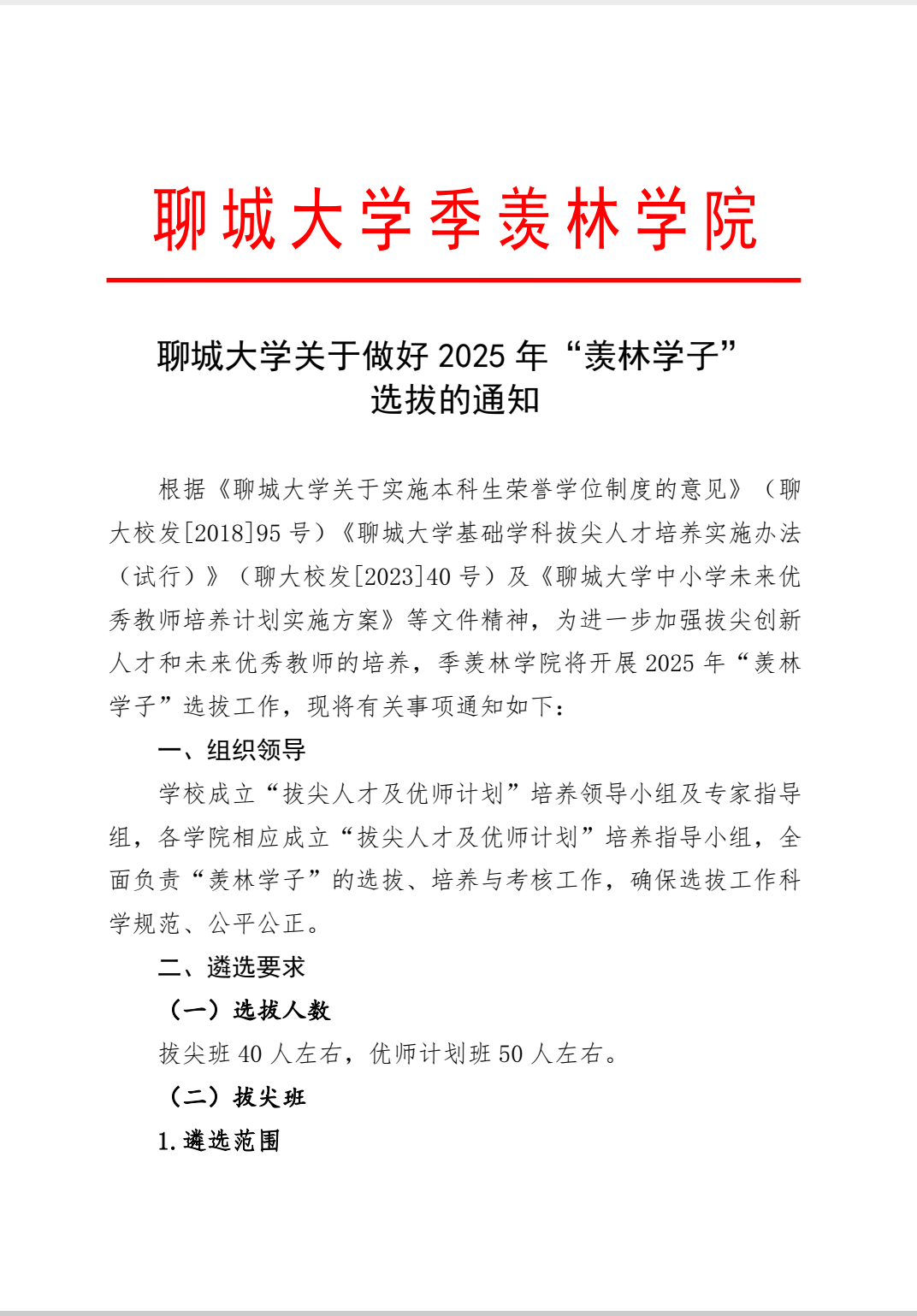 新葡萄官网AMG关于做好2025年“羡林学子” 选拔的通知