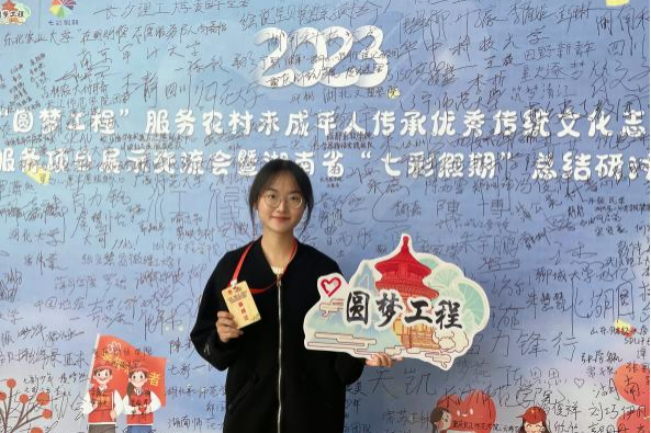 2023年“圆梦工程”志愿服务项目为大学生志愿者锻炼能力、回馈社会提供了契机,2023年“圆梦工程”服务农村未成年人传承优秀传统文化志愿服务项目展示交流会暨湖南省“七彩假期”总结研讨会为各志愿服务团队展示成果、交流探讨以及学习互鉴提供了平台,新葡萄官网AMG欢声“孝”语服务队衷心希望团队做出的努力能给活动地带来一些切实可行的建议,希望能为留守儿童带去知识、关爱和温暖。日后,新葡萄官网AMG欢声“孝”语服务队愿继续用汗水诠释奉献,用爱心汇聚希望,为助力未成年人成长圆梦增添青年力量,为志愿服务事业蓬勃发展贡献青年担当!