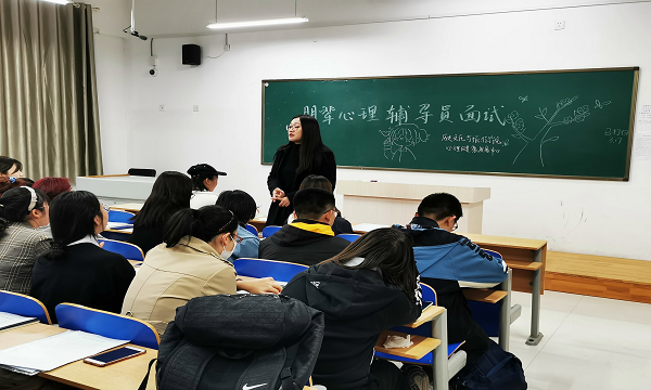 为响应学校关于加强大学生心理健康教育的号召,增强同学们的自信心与心理耐受力,调节同学心理健康,提升同学们的心理素质,帮助大家健康积极地生活学习,新葡萄8883官网版于3月18日晚东校区6号教学楼A405室举行了朋辈心理辅导员选拔面试活动。辅导员薛天老师,朋辈心理辅导员选拔参赛人员以及心理健康发展中心全体人员参加了本次活动。 大学生时代是一个特殊的时期,心理发展并未完全成熟,在面临来自各方面的挑战时,很难正确处理,一些同学存在生活适应障碍问题,面对明显的生活和环境变化,产生短期和轻度的烦恼状态和情绪失调,焦虑不安。部分同学有社交焦虑障碍,在社交场合害羞、局促不安,害怕被审视,不敢演讲,回避社交。或者面临考研四六级等学业压力,而学习踟蹰不前,矛盾的处境使身体心理遭受巨大压力。因此为了更好地了解大学生心理状态,帮助同学们解决生活烦恼与心理问题,学院组织了朋辈心理辅导员选拔活动,选出心理健康,热情耐心的心理辅导专员为同学们解决心理上的问题、挫折提供良好的途径。在本次选拔活动中,参与选拔的比赛人员积极展示自身的才能,薛天老师和心理健康发展中心的评委认真观看点评。选拔活动有条不紊的进行,参赛同学展现了自身优秀的共情心与心理健康调节技巧,评委选手积极互动,活动氛围融洽,取得效果良好。 朋辈心理辅导员选拔活动顺利结束。选出的朋辈心理辅导队员会定期调研学生心理健康情况,为同学们解决了心理问题,使同学们更加积极向上。该活动无论是对部门工作同学个人心理素质的提高,还是对学院心理工作的开展,都是一件很有益的事。希望辅导员们能够保质保量地完成了各项工作,解决同学们生活中的心理问题,同时提升自身的交际沟通能力,进行一次次心灵的探索,走进思维这个神奇的世界,取得令学院与同学满意的效果。
