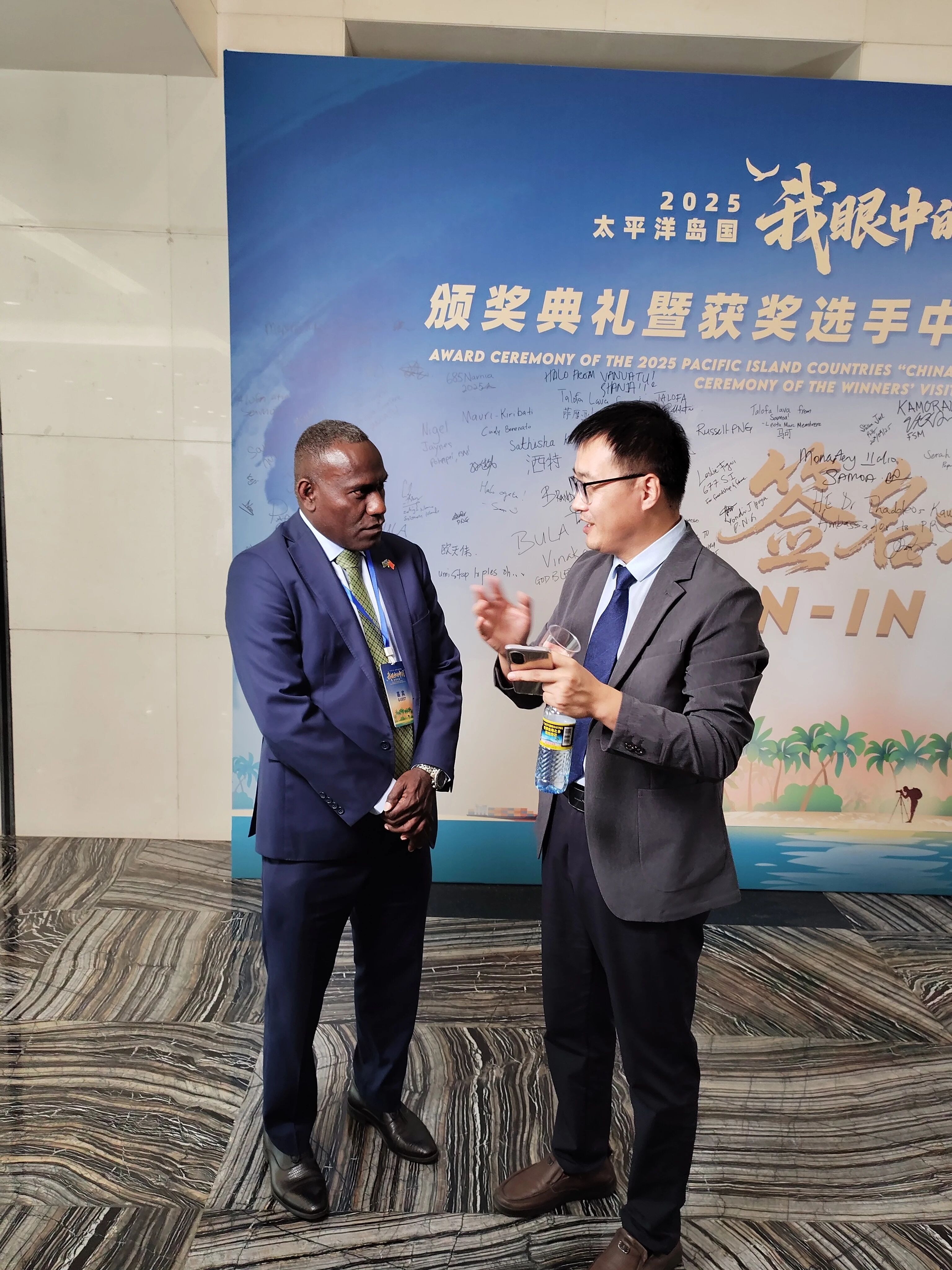 9月20日,由中国公共外交协会主办,环球网支持的2025年太平洋岛国“我眼中的中国”视频大赛颁奖典礼暨获奖选手中国行活动启动仪式,于中国外交部蓝厅隆重举行。中国-太平洋岛国应对气候变化合作中心常务副主任陈德正、新葡萄官网AMG太平洋岛国研究中心副主任刘建峰应邀出席活动,与来自各太平洋岛国的驻华使节、获奖代表、学者及青年学子共同见证赛事成果,探讨深化中国与太平洋岛国人文交流的合作前景。期间,陈德正教授向出席活动的部分中外嘉宾介绍了中国-太平洋岛国应对气候变化合作中心和新葡萄官网AMG太平洋岛国研究中心的最新工作进展。 据了解,2025年太平洋岛国 “我眼中的中国” 视频大赛自启动以来,得到太平洋岛国各界积极响应,共收到来自10个太平洋岛国的200多部参赛作品,相关内容在海外平台的传播量已突破1500万,成为中太人文交流的一次亮眼实践。颁奖典礼上,太平洋岛国青年创作的一系列优秀视频作品进行了展播。这些作品题材广泛、视角独特、情感真挚,生动记录了中国与太平洋岛国在经贸合作、人文交往、共同发展中的感人故事,充分展现了两地人民之间的友好情谊与对彼此文化的浓厚兴趣。近年来,在共建“一带一路”和全球发展倡议的框架下,中太双方各领域务实合作成果丰硕,民心相通基础日益牢固。此次视频大赛正是促进中太人民相知相亲的重要平台,通过镜头语言增进了相互了解,减少了认知隔阂,为构建更加紧密的中国—太平洋岛国命运共同体注入了鲜活的人文动力。颁奖典礼结束后,获奖选手将继续前往中国山东、福建等地进行走访,全方位感受中国的多元魅力,继续用镜头去播撒中太友谊的种子。 9月22日,2025年太平洋岛国“我眼中的中国”视频大赛获奖选手代表团将抵达聊城,期间到访中国-太平洋岛国应对气候变化合作中心开展交流活动。